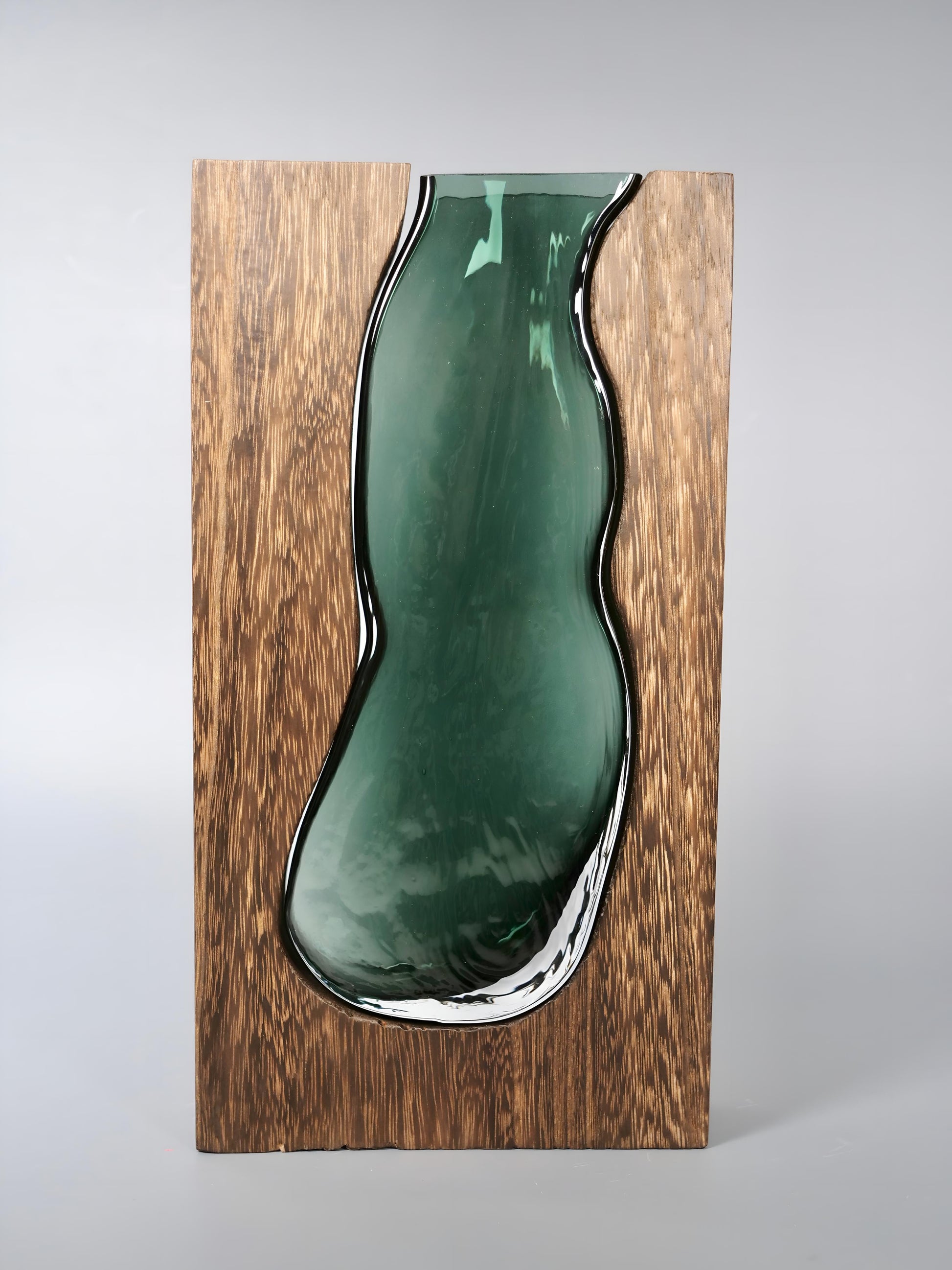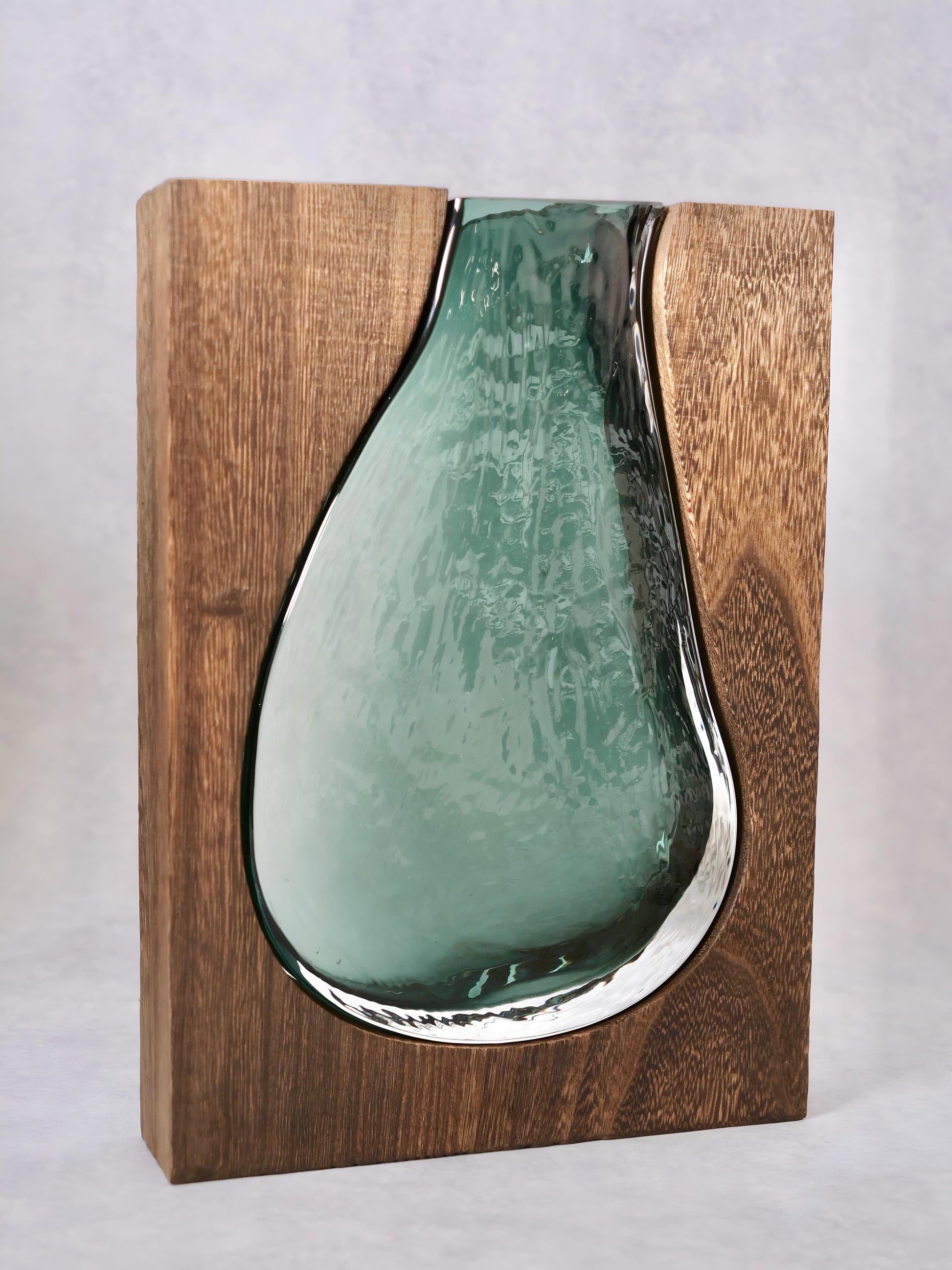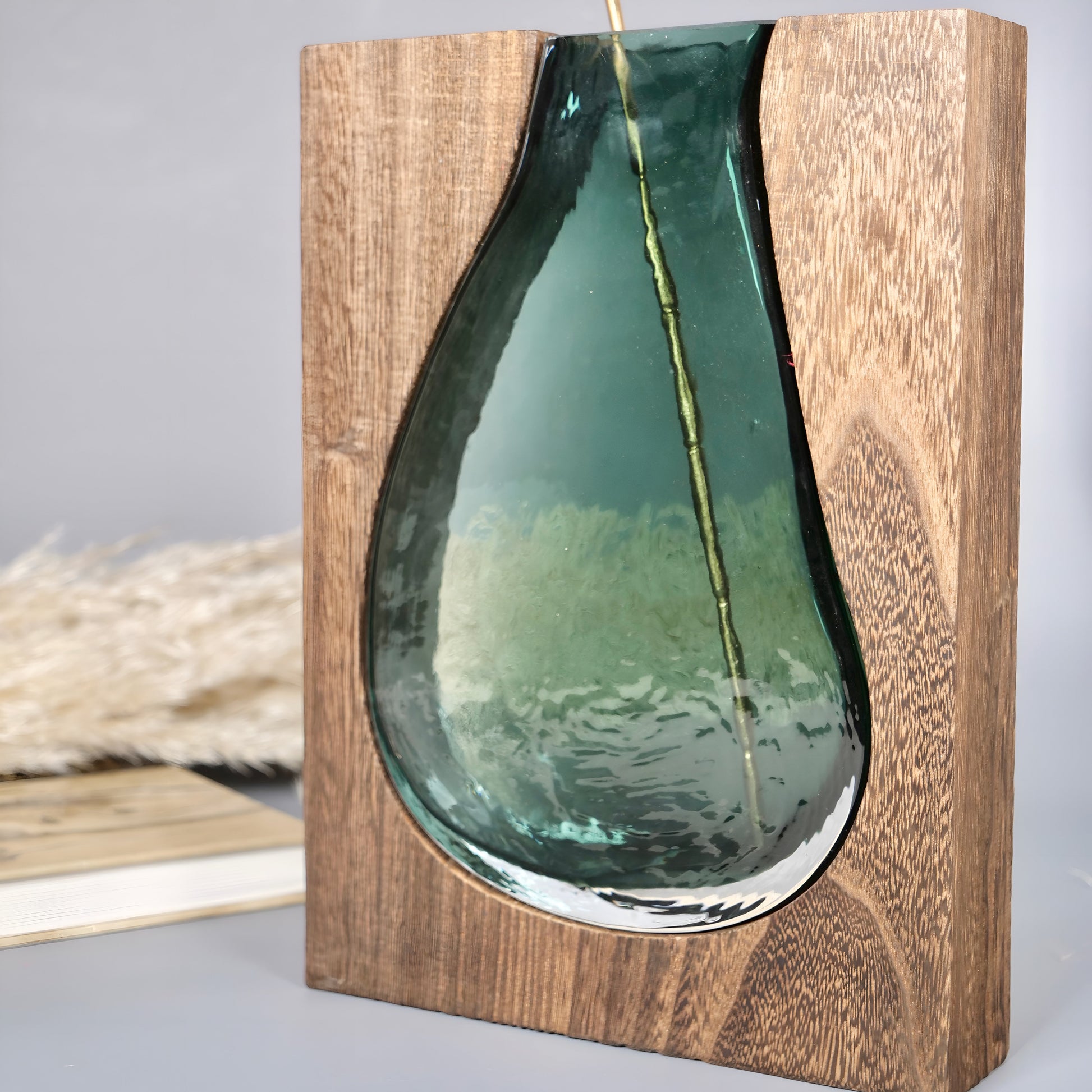 En vas med ett dekorativt mönster som för in en härlig stämning i ditt hem. Unik blandning av trä och glas som framhäver elegans och exklusivitet. Det går att designa vasen med några väl valda blommor. Passa på och köp denna fina vas innan det är försent!