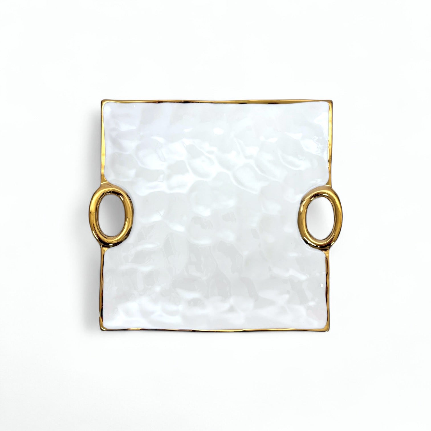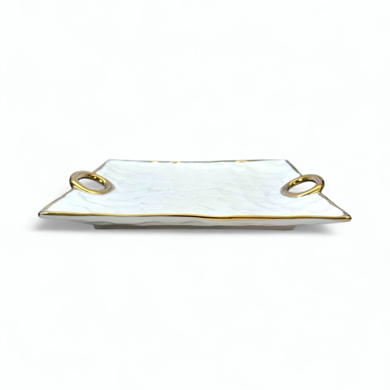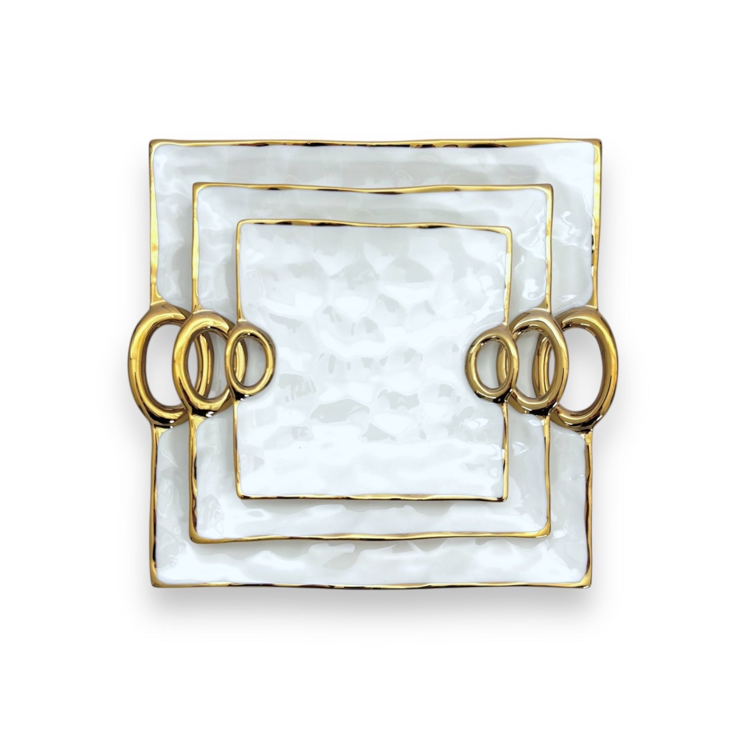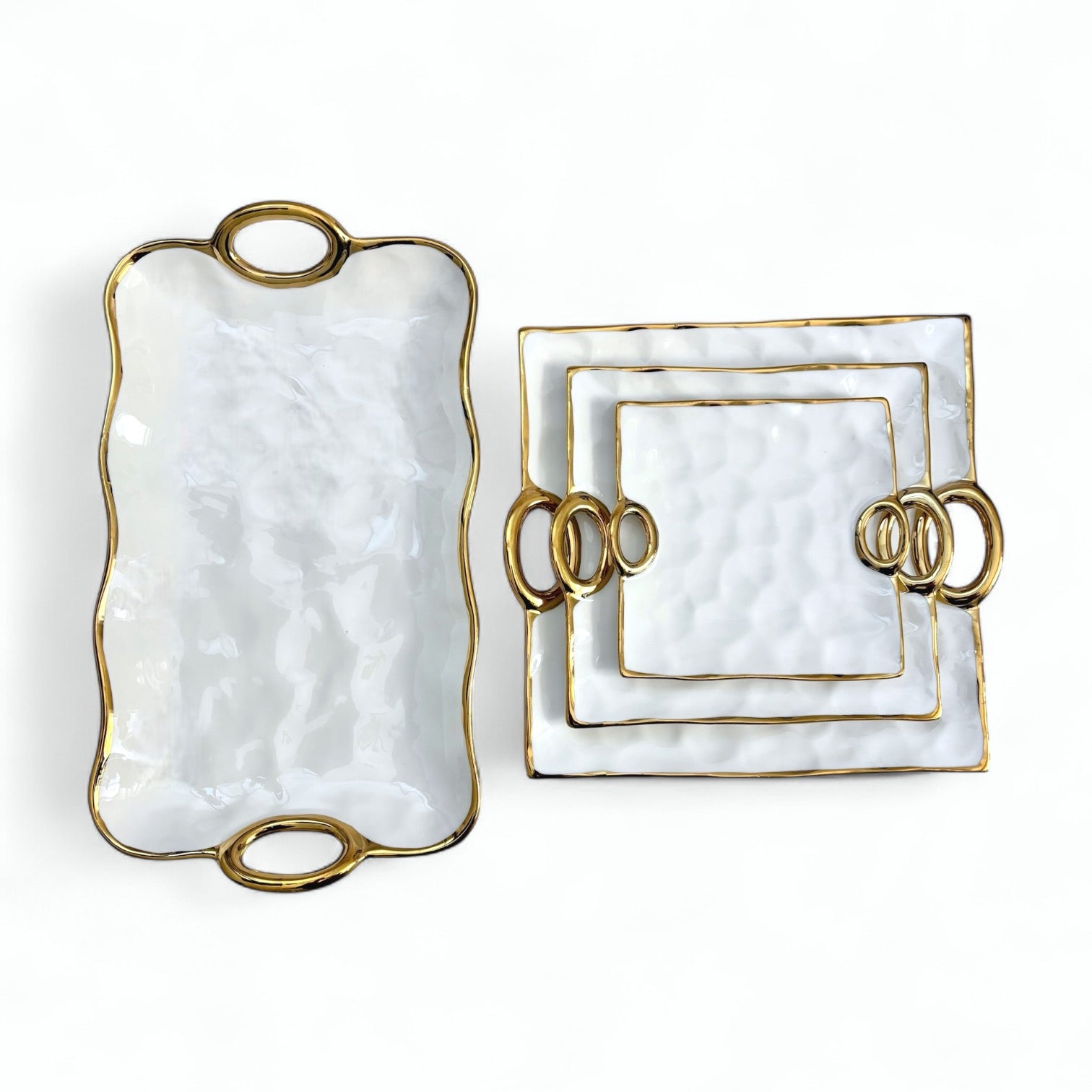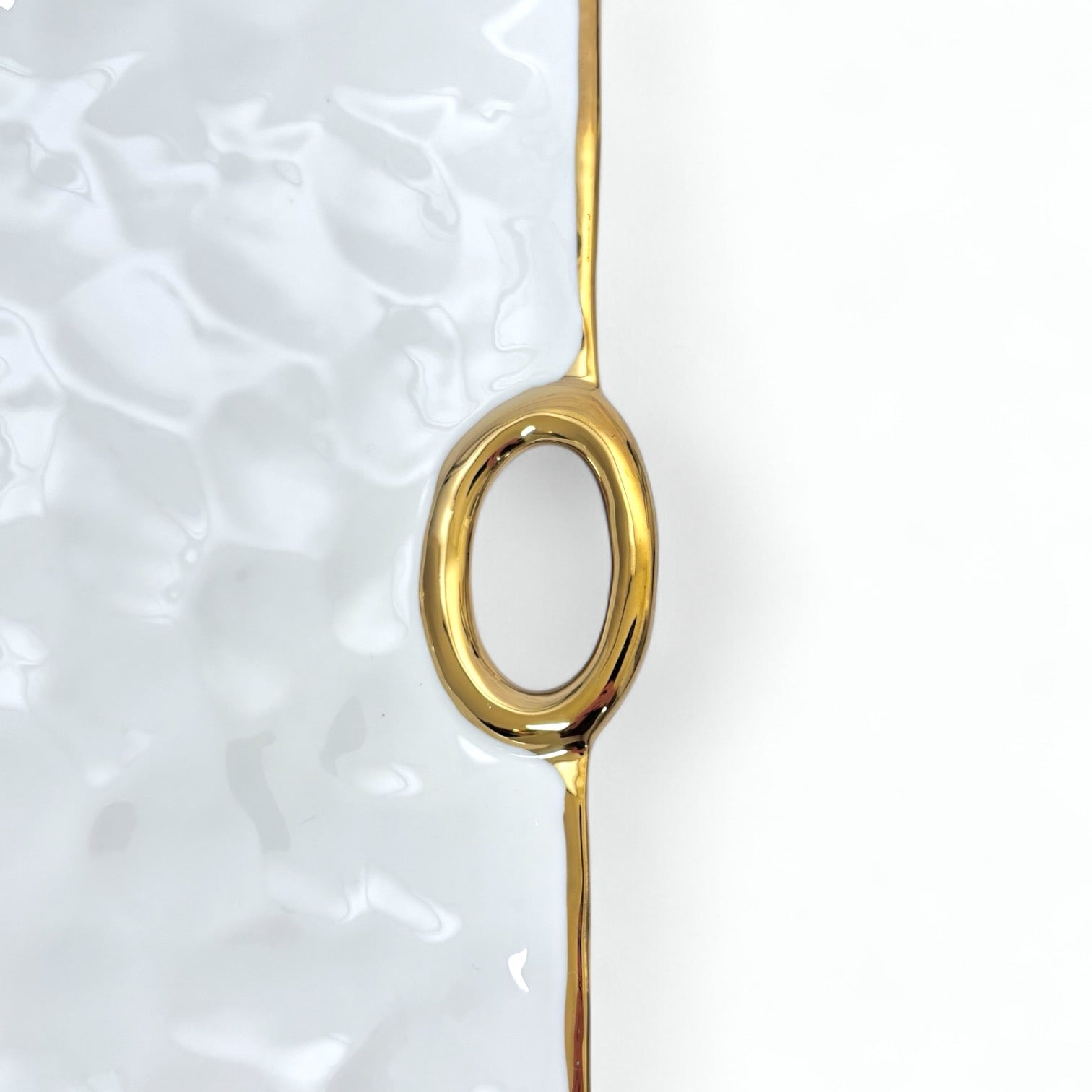 Klara tallrikar i vågigt vitt porslin med elegant guldkant ger en sofistikerad känsla till varje dukning. Finns i tre storlekar och passar perfekt för både vardagsbruk och festliga tillfällen. Kombinera gärna med Klara serveringsfat för en enhetlig och lyxig servis.