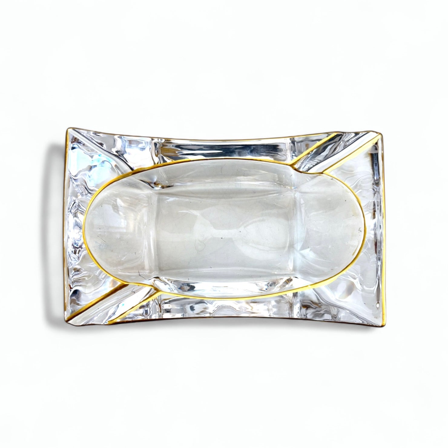 Letar du efter en stilren och praktisk askfat? Då är denna glasaskfat med guldkant det perfekta valet för dig. Den är inte bara snygg, utan även enkel att rengöra och håller sig snygg länge.